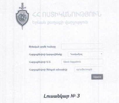 17. Հարցաքննությունն ավարտելուց հետո այն իրականացնող ծառայողը սեղմում է «Ավարտ» կոճակը և դուրս գալիս համակարգից (տե՛ս, Լուսանկար N 3):