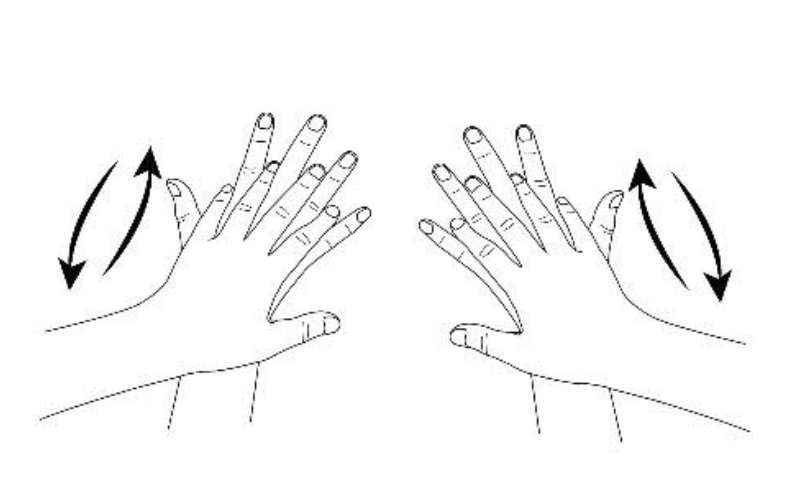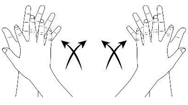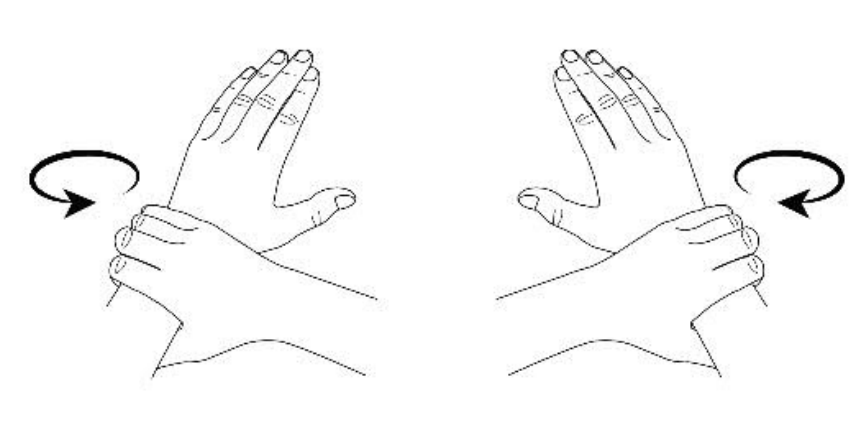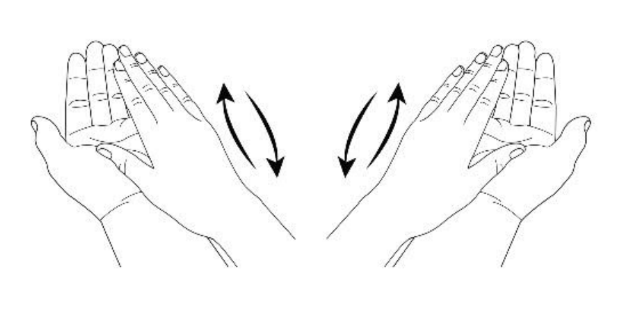 1) Ձեռքերի ափային մակերեսները տրորել հետդարձ-առաջընթաց շարժումներով, խաչելով ձեռքերի մատները: