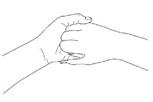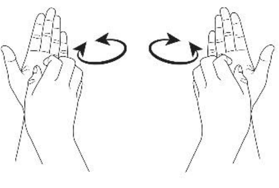 3) Հերթով, մի ձեռքի մատների բարձիկներով` «պտղունցի» նման հավաքված, մյուս ձեռքի ափային փոսիկի մեջ կատարել շրջանաձև շարժումներ` ժամացույցի սլաքի և հակառակ ուղղությամբ: