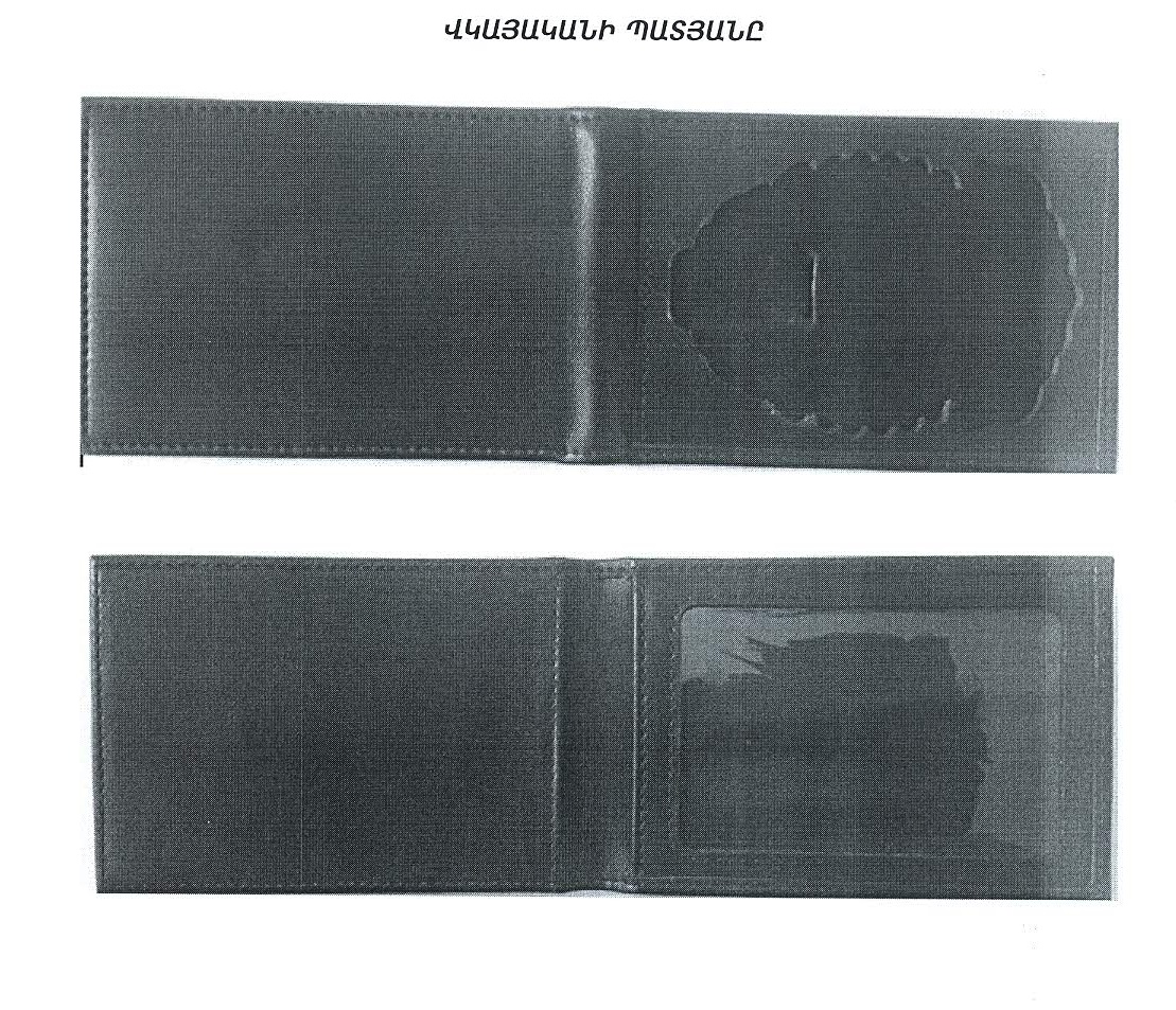 1) 102x70 մմ չափսի երկկողմանի ծալվող սև կաշվե պատյանը (այսուհետ` պատյան) (Ձև 2),